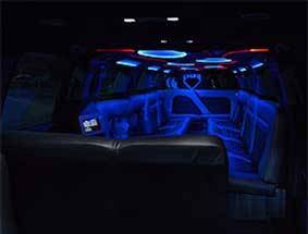 Our black Cadillac ESV SUV seats up to 6 adult passengers who want to experience outstanding ride comfort and relaxation in ultra plush tan leather seats and impressive looking climate-controlled cabin. It has dark tinted windows, sunroof, (10) speakers, (2) TV monitors, USB hookup, and DVD entertainment system.