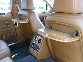 This Bentley Flying Spur with Mulliner driving specifications is fully loaded to satisfy 3 passengers in sheer comfort and safety, like air conditioning with climate controls, Bluetooth, CD changer and satellite radio with surround sound, diamond-quilted seats and door panels with perforated hides, veneered chestnut picnic tables, rear shade, sun roof and much more. It is glacier white and sports 21″ seven twin-spoke two-piece alloy wheels with a chrome lower grill matrix.