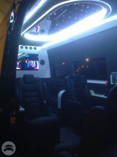 Roll out the red carpet for an event in a Mercedes Sprinter Van! Choose the discreet and sleek sprinter van for luxurious travel for up to 10 people. Features include big screen TVs, beverage service stations, work tables, and seats customized for comfort.