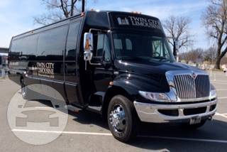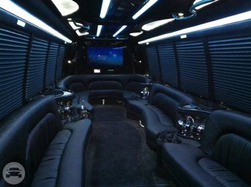 Roll out the red carpet for your group in a Limousine Bus. Select the Krystal limousine bus for VIPs for your entertainment plans, sporting events, or for wedding transportation. Seat up to twenty-four people in this limousine with interior features including full leather seating, two cocktail bars with champagne bucket decanters, glasses and champagne glasses, fiber optic starlight ceiling, interior trim and bar top, carpet floor, tinted windows, AM/FM CD/DVD player combo with 15" LCD TV in surround sound & touch screen, chrome opera lights, cabin lights, and vanity mirrors.