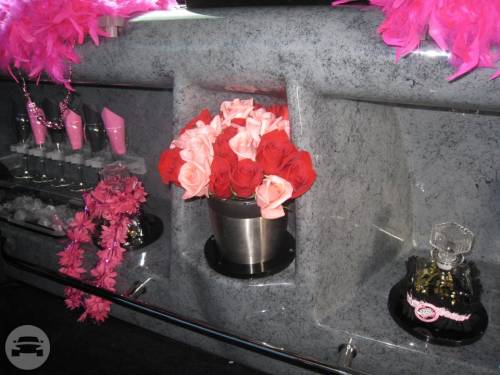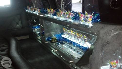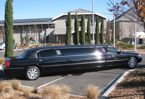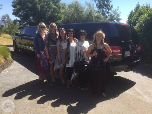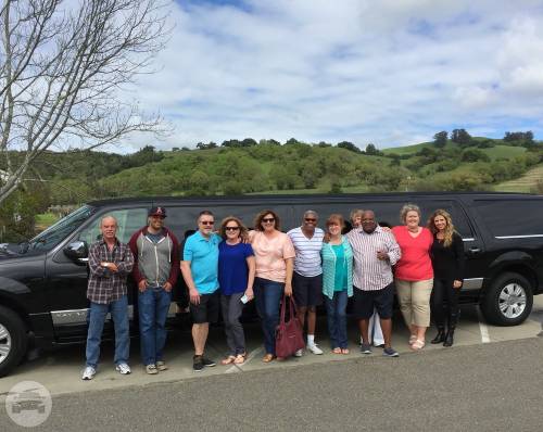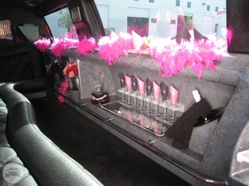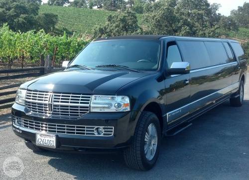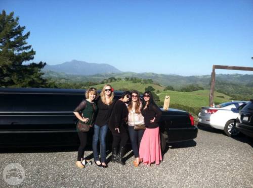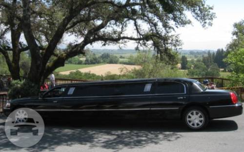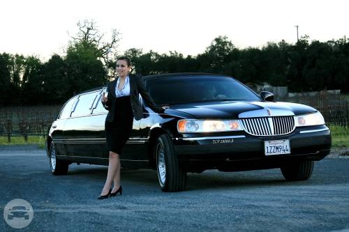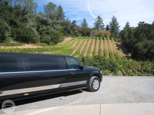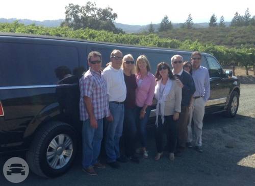 An eight passenger Lincoln Stretch Limousine, themed for wine tasting and for a wedding....