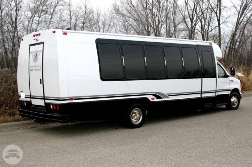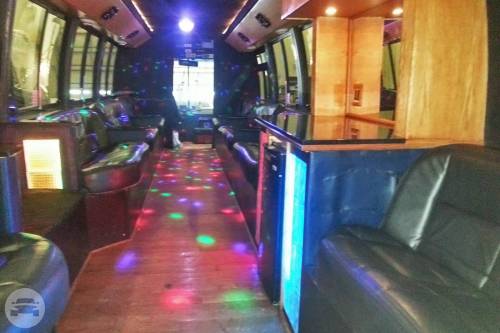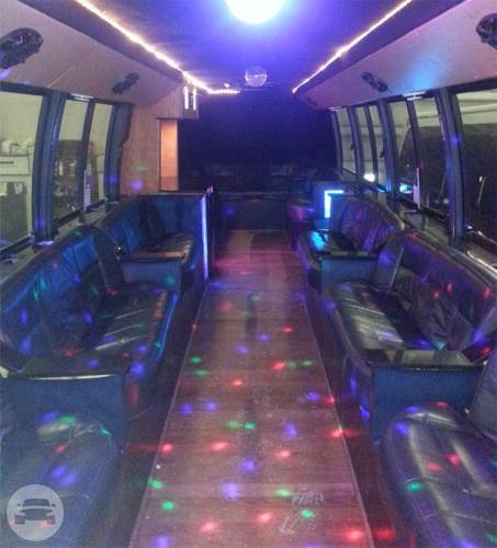 26 to 30 Passengers. This is a versatile vehicle…great for corporate events with a lower profile exterior with a limo interior atmosphere. Just the same, it’s fabulous for larger wedding reservations, prom groups, or bar hops as well. Comes equipped with: Black leather seating, Hardwood Floors, Refrigerator, Optional Disco Lighting, Limo lights, 1 large beverage cooler with fresh ice, upgraded audio with iPod and aux connections.