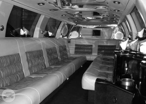8 to 10 Passengers. • White exterior and leather interior • Chic fiber optic lighting • Two bars with fresh ice, 8-10 champagne flutes and lowball glasses • Upgraded sound system with iPod and AUX connectors