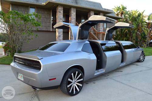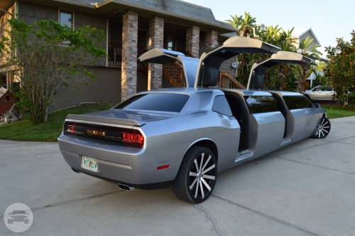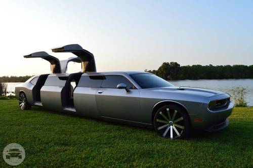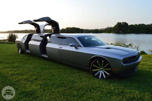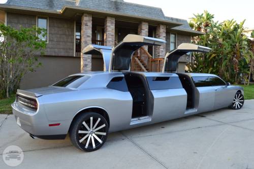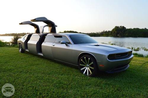 Check out our Classic Dodge Challenger Limousine! This unique 12 Passenger Limo has three HUGE Jet Doors making access in and out of the limo so easy! The interior of this Limo is put together with a touch of EXOTIC (Gator and Ostrich) upholstery. Featuring party lighting inside the limo and is equipped with a 5,000 watt stereo system with sub-woofers behind the seats that will thump you. With two Large Flat Screen TV’s, and DVD/CD/MP3/FM Radio, and iPod connections, making this a real party machine! The exterior of this Limousine has Double Limo Tint on all windows for privacy and for an extra touch of presidential treatment we will Roll out the Red Carpet upon entering and exiting the Limo. (unless you don’t want it). Yes, the New Dodge Challenger Limo is a one of a kind $175,000 Ride. There is not another vehicle on the planet that compares to this one. Pictures and videos of these automatic jet doors opening with the fog machine rolling the fog out, are Priceless ! You Deserve it!