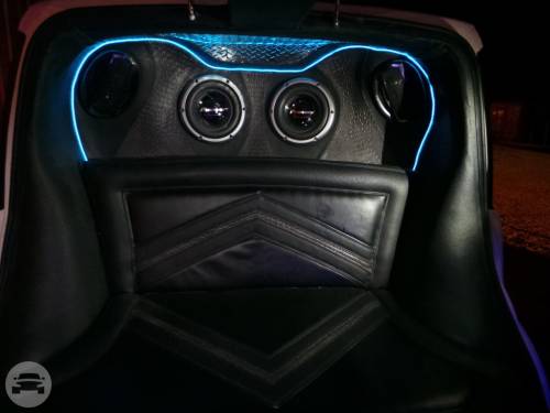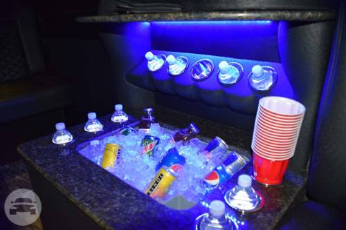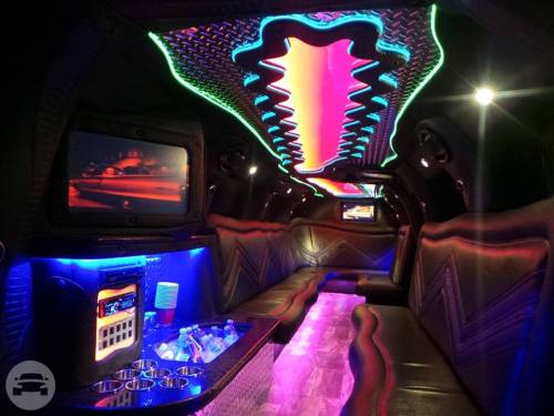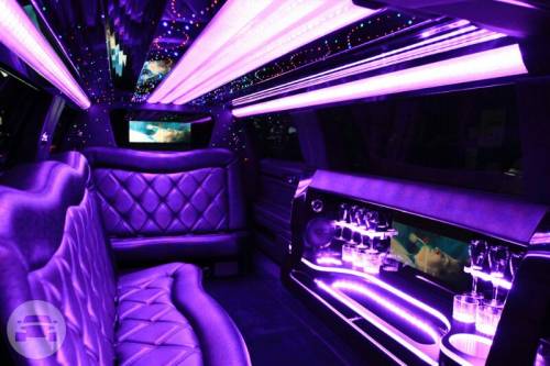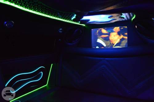 This Luxury Limo has plush pleated seats that make you feel like Royalty! Has tile and carpet flooring and an cold A/C system to keep the party comfortable. The electronics include a 4,000 watt stereo system with Pioneer sub-woofers behind the seats to thump you, and 2 Flat Screens and a 3rd. one is being installed in the VIP section of the Limo. It comes equipped with a DVD/CD/MP3/XM Radio and an iPod connection. It has 4 Ice Bins for all of your refreshments and state of the art party lighting with strobes and lasers inside the Limo. The exterior classic White Limo color with chrome wheels and Limo Tint on all the windows and we always Roll out the Red Carpet if you desire that "Presidential" treatment upon entering and leaving the Limo.