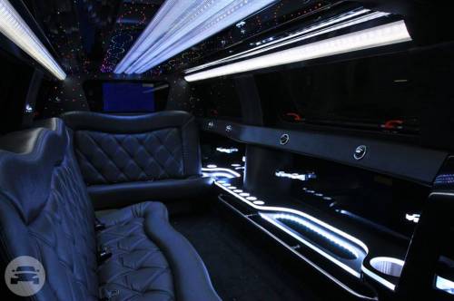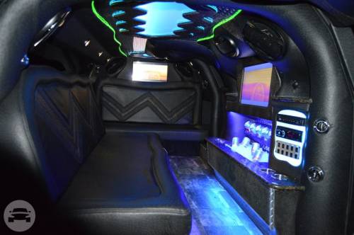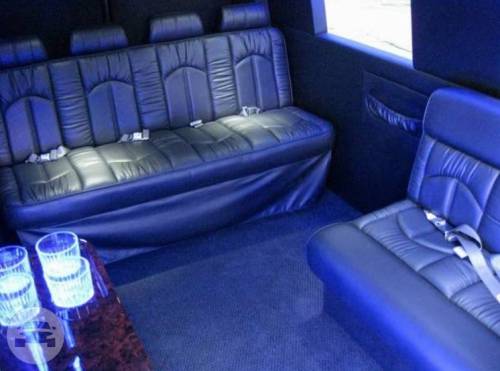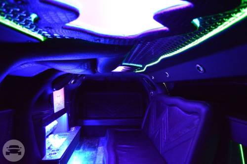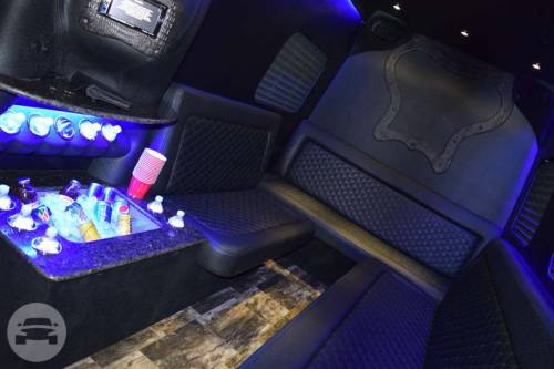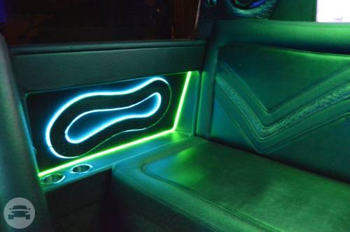This limo is very sleek and stealthy looking with Black Leather interior throughout and really cool interior lighting for your group or party. The electronics include an incredible stereo system and 2 Flat Screens, an iPod connection and DVD Player and a killer A/C system to keep your party cool. The exterior of this Limo is Black with strobe lighting under the limo to say "We Have Arrived"! No matter what the occasion, you will arrive in style with this one-of-a-kind Limo and we always "Roll out the Red Carpet" upon entry and leaving the Limo if you desire that "Special Treatment".