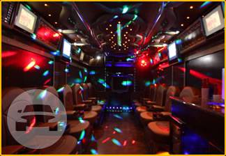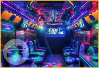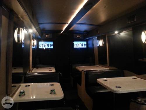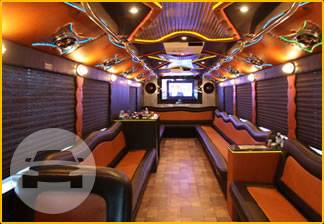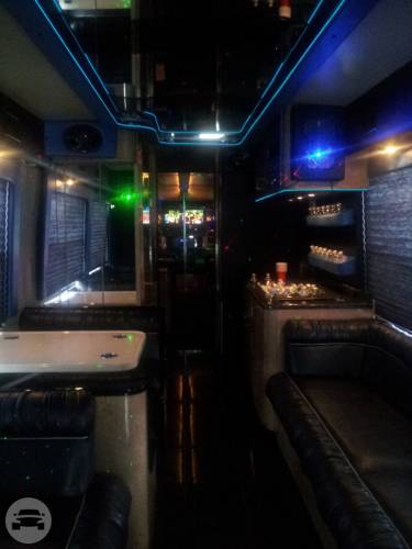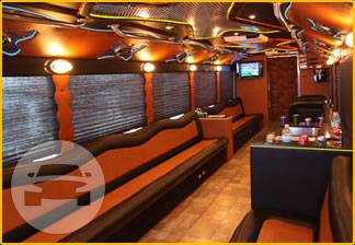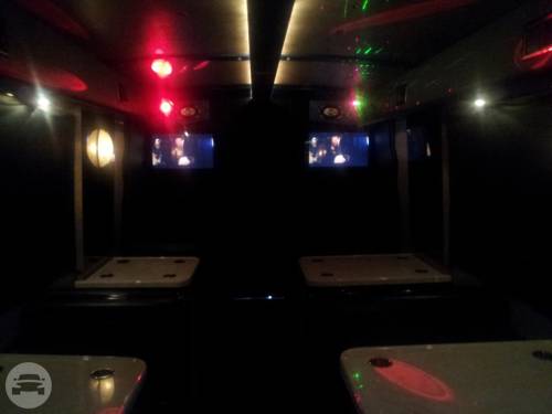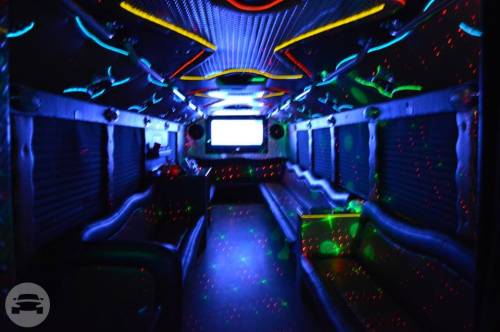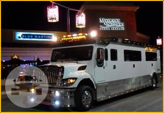 This Party Bus Limo is named “Extreme” for a reason. Your group or party will definatley be impressed when they enter this Limo for your event. There is not another one like this on the planet! This Limo Bus will carry up to 38 passengers whether you are going to dinner, a night out, sporting event, a day or weekend at the theme parks or a wedding, anniversary or school event, this Limo Bus is one of the most comforable rides. The interior has Black and Tan Ostrich upholstry with exotic neon party lighting to set the mood. The electronics in this Limo Bus is state of the art video/audo including 9,000 watt stereo system with 18″ speakers and JBL sub-woofers that you can “feel”! It comes with a 60″ Plasma Screen with Satellite TV with the Sports Package. It comes equipped with a DVD/CD/MP3/XM Radio, an iPod connection, a Sony PlayStation and a Karoake Machine! It also has auxillary inputs for video camera’s to watch your “home movies”. All of our Limo Buses can have custom banners or “Wraps” created with your sign or logo for an awesome advertisement at your special event. This ride also comes with one of the most courteous Limo Chauffeurs on the planet. Big, Clean restroom on board. Capacity: 38 Passengers