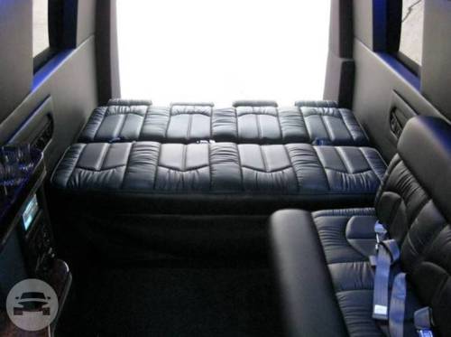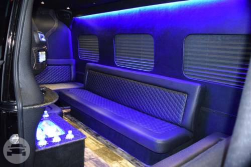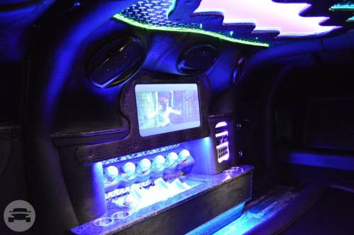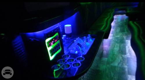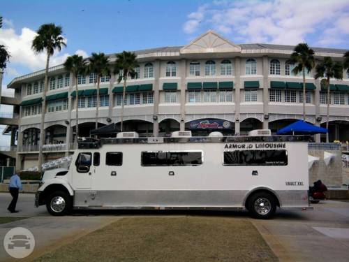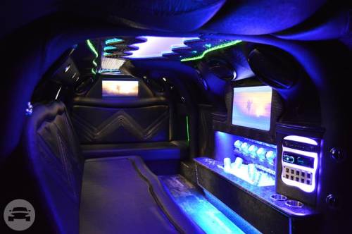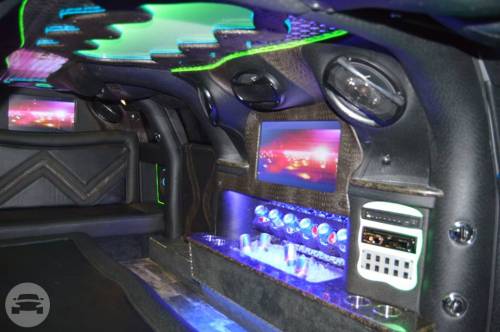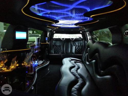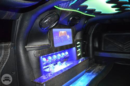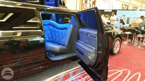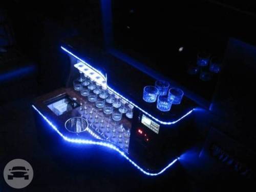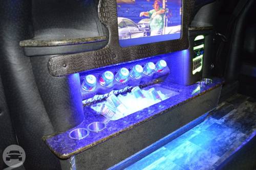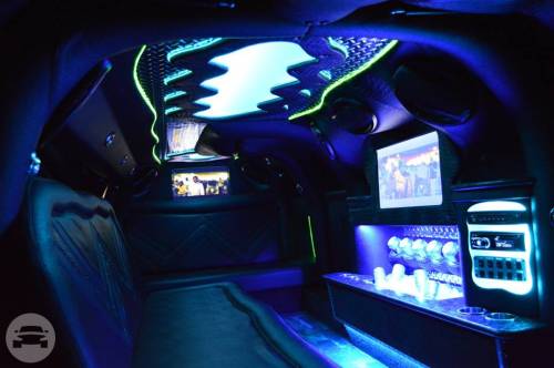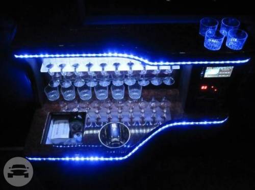 This Limo is equipped with Armor #1 Bullet Proof over the entire vehicle! We'll even have an Armoured Guard (at your request). The interior sports a granite tile, and Black/Blue/Silver Carbon Fiber throughout with carpet and tile on the floors. It has a "Huge Ice Bar" for refreshments and an A/C system to keep the party cool! Electronics include a 60" Plasma Screen TV, a 10,000 watt stereo system with external roof speakers for parades or special events. It comes with a DVD/CD/MP3/XM Radio, an iPod connection and a Sony PlayStation. It has Neon Party lighting inside for atmosphere. The exterior has 7 color neon lighting under the car for great ground effects and automatic steps that extend whenever the door is opened. All the windows have Limo Tint and are Bullet Proof.