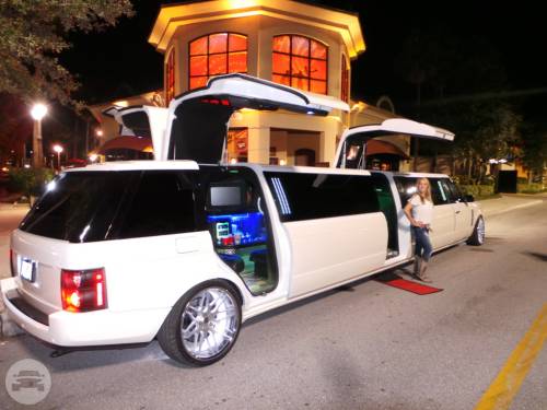 Three HUGE Jet doors, that make is so easy to get in and out of, not to mention cool neon lighting under the Limo for great ground effects and really awesome pictures. The interior of this Limo is put together with a touch of EXOTIC (gator and Ostrich). Great party lighting inside the Limo and is equipped with a 9,000 watt stereo system with Pioneer sub-woofers behind the seats that will thump you. It has 4 large Flat Screens, DVD/CD/MP3/FM Radio, an iPod connection. It has double Limo Tint on all the windows for your privacy and for an extra touch of presidential treatment we will Roll out the Red Carpet upon entering and exiting the Limo. (unless you don’t want it) The Range Rover Limo is really the “Biggest and Baddest” of SUV Limos to ride around in all of Florida! So if you want to arrive like no one else, Then call no one else. We are here to Serve you with the Ultimate in SUV’s, “THE RANGE”. Yes, the Range Rover HSE Super Stretched Triple Jet Door, with all ostrich and Gator skin interior is a one of a kind Ride. There is not another vehicle on the planet that compares to this one.