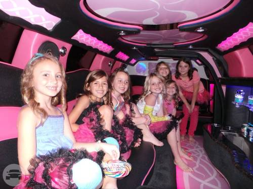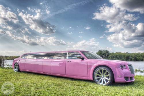 This 12 Passenger limo has Black Ostrich and Pink interior throughout. Along with the awsome Color Wash Lighting and Strobes inside, this Limo is unmatched for an awsome time for your party. It comes equipped with a large Ice Bar for your party. Electronics include a 5,000 watt stereo system, DVD Player, and iPod connections. It's perfect for Bachelorette Parties, Birthdays, Sweet Sixteen, or a Girls-Night-Out but the guys seem to like this Pink Limo Beauty as well. The exterior of this Limo is"Pink" of course with 22" Chrome Wheels for that classy style.