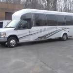 Our Brand New 23 passenger white and grey bus called “The Colonial”. Fully-equipped so you can rest assured you’ll arrive to your destination comfortably and on schedule. This beauty features comfortably spaced high back leather reclining seating with arm rests, plenty of over-head luggage storage with dual reading lights, a large flat screen monitor, AM/FM/CD/DVD/Radio and Ipod Input, air conditioning and heating units and a huge rear luggage compartment. The perfect mid-size shuttle is a great choice for weddings, corporate work, wine tours, shopping, out of town for long distance or any othert event where a van or SUV isn’t quite large enough and so much more! A favorite of meeting and event planners. When your group needs to get there in comfort and style, a mini bus is the perfect vehicle to shuttle your group between venues. With comfortable seating and a smooth ride, you will find this vehicle is perfect for shuttling conference attendees between airports, hotels, and event sites.