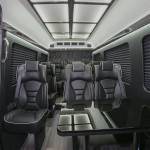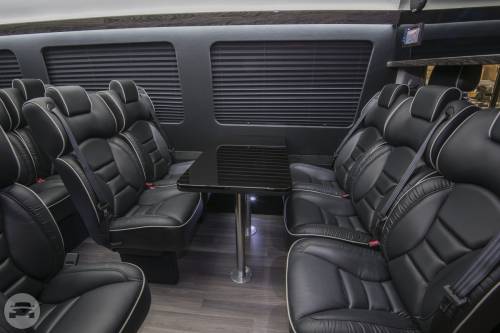 Presidential Limousine is proud to announce our 12-14 passenger Mercedes-Benz Sprinter Shuttle. The Ultimate in Corporate | Event Transportation has arrived. This Upscale VIP Shuttle features all of the luxury and conveniences for group transportation. This beautiful and spacious luxury vehicle has over 6 feet of height inside and a large sliding door for ease of boarding. Each comfortable seat features its own lap & shoulder seatbelt. A huge luggage area adds to its usefulness. The quiet interior, smooth ride and extra capacity air-conditioner/heater combine with the large tinted windows for a wonderful charter experience. Your small group can will truly experience the luxury of a chartered Mercedes in this vehicle. Amenities: Exterior: Black Exterior • Tinted Windows • Maximum Cargo Volume Interior: Supple black leather seating • interior standing height of 6’4″ • Side Door Entry • Low Side Step-In Height • Automatic Air Con / Climate Control • Electronic Stability Program • Premium AM/FM/CD