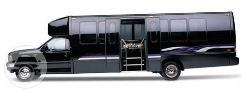 Mega Limousine / Party Bus (Up to 36 Passengers) Our Mega Limousine Bus provides an unforgettable atmosphere and an unsurpassed ride for as many as 36 passengers. Its exquisite features include: Soft Black Leather Couch Seating Laser Lighting Strobe Lighting Multiple Flat Screen TVs DVD Screens Custom Stereo Sound System Mp3/ IPod Compatible VIP Section Available