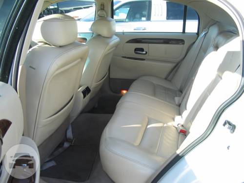 Black Lincoln Town Car Seating for 4 This vehicle is equipped with soft black leather saets. Optionally equipped with ice bins, rock glasses, & champagne glasses, stereo & CD player.