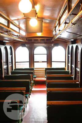 San Francisco Style Trolley Only one of it's kind in Midwest Seating for 31 Passengers This authentic San Francisco styled Trolley is equipped with natural oak wood trim, a beautiful raised coupla ceiling and Oak wood park bench seating with hunter green cushions, polished brass railings, Oak interior, original Trolley bell, Fully Air-conditioned, PA system (Speakers inside and out) TV's AM/FM TV Tuner, CD/DVD/MP3 Player, and Red and Green interior lighting.
