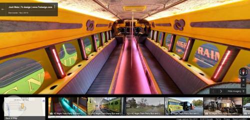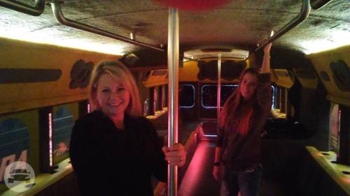 You want a party bus in Kansas City? How about one that doubles as a time machine. The 70's never looked this good - with a wide aisle encircled by custom leather seats, wood floors and a sound system comparable to having your own band. The plasma TV is perfectly placed to watch your favorites and a built in cooler provides storage for your beverages of choice. Extra storage is readily accessible below for your other needs. This bus was made to party! There�s seating for up to 35 friends - who will be bathing in psychedelic colors and laser lights. This party bus offers a good time for all, whether it's tailgating or just friends getting together.