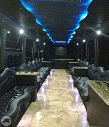 "Night Rider" Seating for 24 - 30 Passengers Equiped with satellite TV with two 32” flat panel tv’s with DVD. The 1000 watt stereo is incredible and has 8 speakers with a separate 10 inch subwoofer. Custom LED lighting on the perimeter. Fiber Optics and a laser show at night It has a bar area and large stocked with glasses and ice.