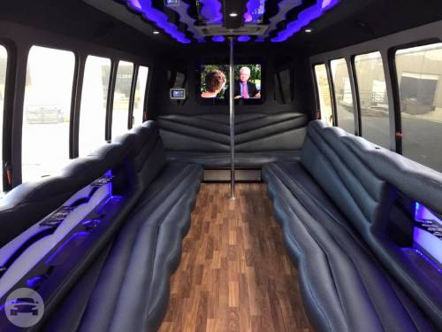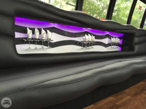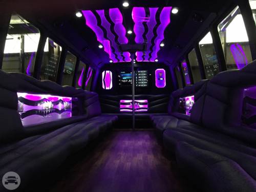 DVD Player, Neon Lights, 2 Tone Leather seating 3 Beverage bar areas, Mirrored Ceiling 2000 Watt stereo with auxiliary connection