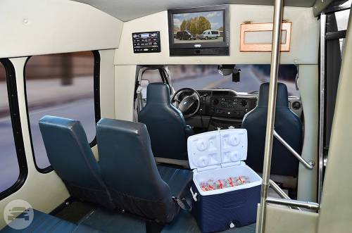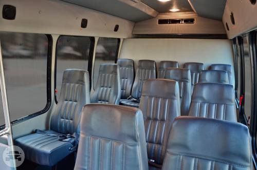 Our new 14 Passenger (including front passenger seat) is ideal not only for airport service and corporate meetings and tours but also for economical transportation for wedding services, concert outings, sport events, road trips and other special events. Room for a cooler to stock beverages of choice. Features Include: High Back Seats with seat belts Premium Jensen entertainment system with auxiliary input for MP3 player 19″ flat screen TV 110 volt power outlet Separate rear luggage compartment
