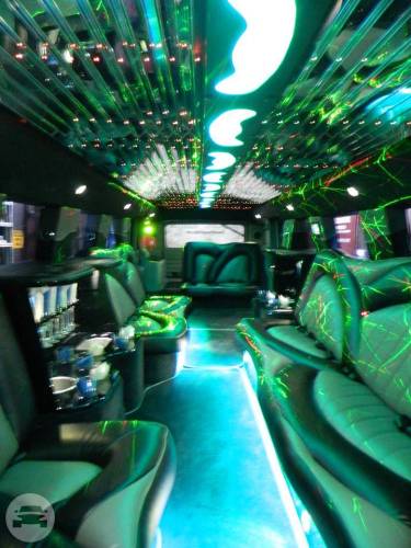 Leonia's Crescent Limousine will make you the talk of the town in the Black H2 Stretch Limousine. This limousine has everything you could ever think of, from a 42" flat panel tv, to an undercarriage neon light show with 16 million different lighting combinations, to a special V.I.P. section located at the very back of the super-stretch. This Limousine Includes: 14 Passenger Capacity 4 Wet Bars 2 Champagne Bars Adjustable Neon and Fiber Optic Mood Lighting Laser / Strobe Light Show Undercarriage Neon Lightshow 42" Flat Panel TV 17" Flat Panel TV DVD Player Bose CD Player / AM-FM Stereo Rear Climate Control Phone Intercom System And MUCH MORE!! You will be on the top of the world with all of the amenities of this Super-Stretch H2 Hummer.