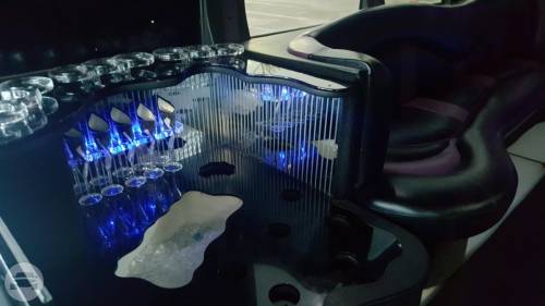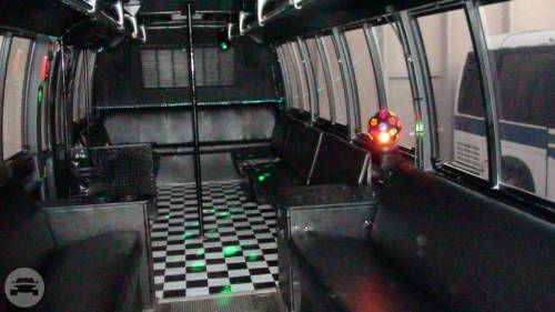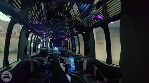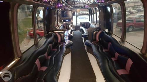 34 passenger limo style perimeter seating dual heat and a/c award winning sound system with cd, ipod,and mp3 capability 2 bar areas with ice well, keg holder, and trash receptacle 2 dance poles custom designed led lighting including ceiling, walls, and floor 60 built in cupholders