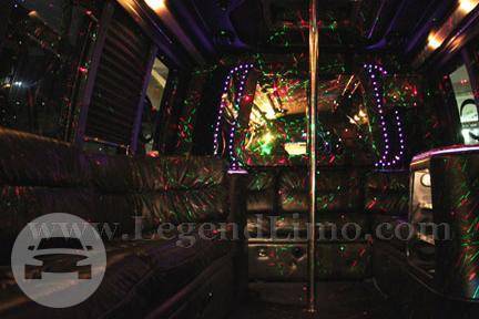 Party bus seats from 2-16 passengers comfortably with a maximum of 16 passengers. Features: CD/AM/FM/IPOD Privacy Window Tint Plus Blinds Fiber Optic Mood Lighting Stereo Surround System Ipod Direct Connection (some models only) Bar Flat LCD Screen (some models)