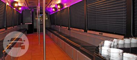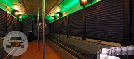 Seating up to 50 Children and 45 Adults IPOD/AUX HOOKUPS (MUST HAVE AUX CABLE) Bottled Waters and Ice Complimentary Disco Lights, Fiber Optics, Neon Lights, Strobe Lights Premium Sound system This party bus is a favorite amongst large group sizes and is a one of a kind rental party bus. With seating up to 50 adults, everyone can come and join in on the fun and delight that is present within these mobile parties on wheels! This party bus rental features three dance poles and unique interior design meant for partying the night away! People in line will look amazed as you and your group show up to the venue getting out of this vehicle wishing they were with you. Cruising around in the coolest party bus rental on earth will make you feel like you’re on cloud nine – or even higher! Many dream of a chance to get together with 49 of their closest friends, but it’s your time to make it a reality! With such amazing prices and great quality of customer service, you won’t have to take out a second mortgage or rob a bank to fund your amazing night out with friends or family. Perfect for birthdays, anniversaries, nights on the town, clubbing events, concerts, sporting events, and winery tours, everyone can find a reason to celebrate and find need in the usage of their very own state of the art party bus rental. Complete with a stereo surround system, flat screen TVs, DVD player, and CD and mp3 capability, as well as a fully functioning fiber optic lighting system with mood lights and other fun settings, you’ll find it hard to stay seated in the plush leather seats surround the fun and wide spaced dance floors! So grab a dozen or so of your favorite people in the world, plan a day trip to your favorite places, and finally let your hair down as you have a night to get you through whatever other things you’ve got going on your life. A party bus isn’t just an escape from the boring monotony of life – it’s a way to go out and spend a day with the people you like! So call today for your special pricing on one of our party bus rentals, and see just how much fun you can be having!