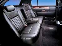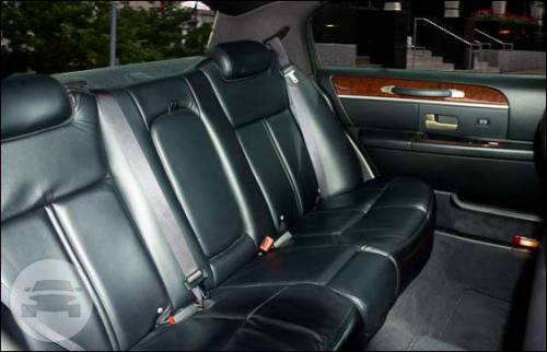 Black Lincoln Town Car Seating for 4 This vehicle is equipped with soft black leather saets. Optionally equipped with ice bins, rock glasses, & champagne glasses, stereo & CD player.