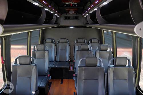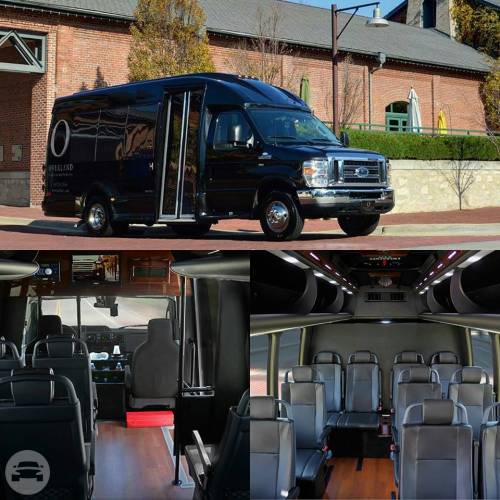 The newest Executive Van in Kansas City offers classic looks, executive amenities and spacious, stylish comfort for up to 12 passengers. Features include: Black leather high back seats with seat belts Wood laminate flooring Built in bar area with cooler Premium Jensen entertainment system & 19″ flat screen TV Auxiliary input for MP3 player & 110 volt power outlet Accent lighting & walnut wood trip Ample overhead storage Separate rear luggage compartment This vehicle is ideal for board of directors movements, golf outings, wedding parties, holiday parties & light tours, nearly any corporate event or leisure occasion.