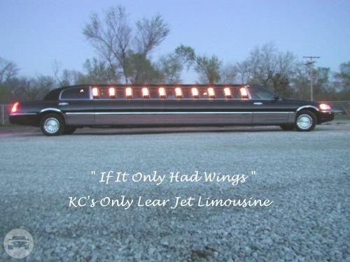 Flashier than our Lincoln Stretch Limo, it will carry up to 14 people in style. The Lincoln Motor Company outdid themselves with the Lear Jet Limousine. Taking cues from the Lear Jet Airplane, the window styles and chrome lower body create a sleek, fast appearance. Slightly flashier than our Lincoln Stretch Limo, it will carry up to 14 people in style. Features Include: [one-half first]12-14 passenger 2 TV’s VCR CD Fiber Optic lighting [end-column][one-half]Bars Leather seats 9 Jet windows down each side Mirrored Stargazing Ceiling.[end-column] The Lincoln Lear Jet Limo’s sleek style is well-suited as a Groom’s car for a wedding, but also looks great for events in the city.