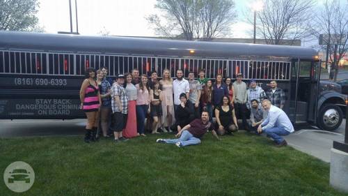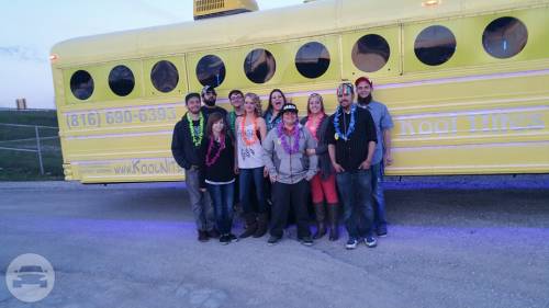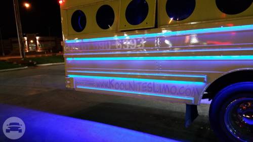 You want a party bus in Kansas City? How about one that doubles as a time machine. The 70's never looked this good - with a wide aisle encircled by custom leather seats, wood floors and a sound system comparable to having your own band. The plasma TV is perfectly placed to watch your favorites and a built in cooler provides storage for your beverages of choice. Extra storage is readily accessible below for your other needs. This bus was made to party! There�s seating for up to 35 friends - who will be bathing in psychedelic colors and laser lights. This party bus offers a good time for all, whether it's tailgating or just friends getting together.