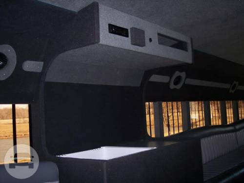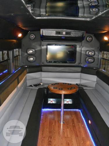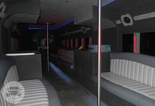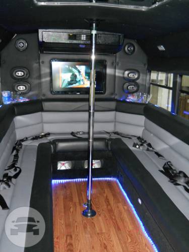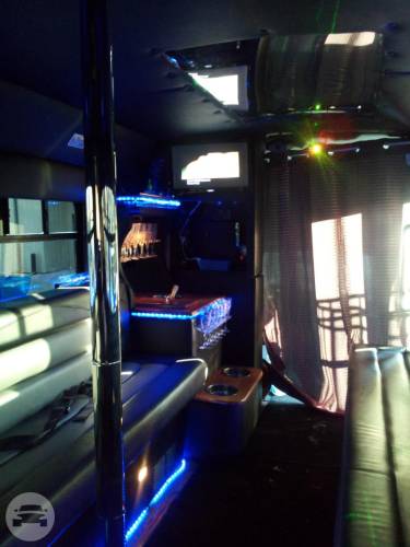 34 passenger full wrap around limo style perimeter seating dual heat and a/c award winning sound system with cd, ipod,and mp3 capability 2 bar areas with ice well, keg holder, and trash receptical 1 dance pole custom designed led lighting including ceiling, walls, and floor 60 built in cupholders 42 in. flat screen with dvd and surround sound