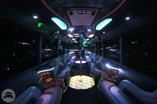Party bus seats from 20-40 passengers comfortably with a maximum of 40 passengers. Features: CD/AM/FM/IPOD Privacy Window Tint Plus Blinds Fiber Optic Mood Lighting Stereo Surround System Ipod Direct Connection (some models only) Bar Flat LCD Screen (some models)