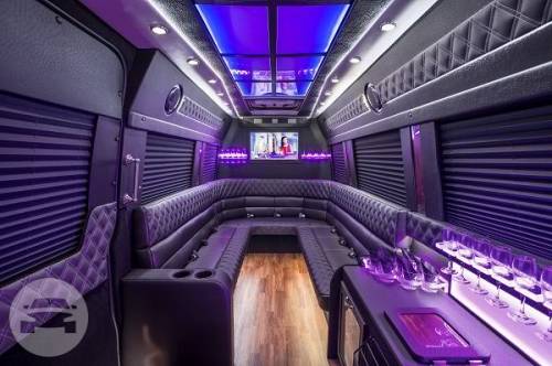 Our Mercedes Sprinter Limo can accommodate 10-12 passengers. This van features fiber optics, laser light shows and a wooden floor and blinds for…