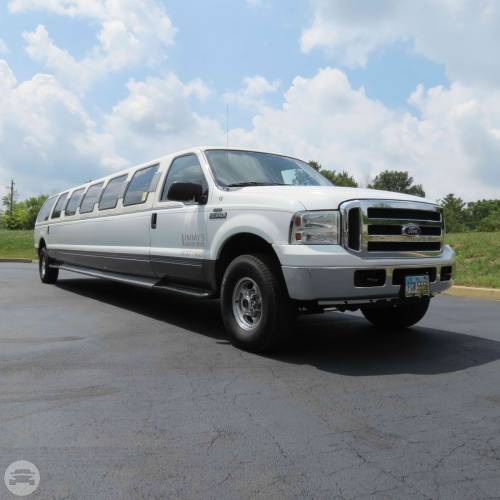 Our White Ford Excursion Limousine is a 14 passenger super stretch. It has fiber optics, color changing ceiling neons and a media device…