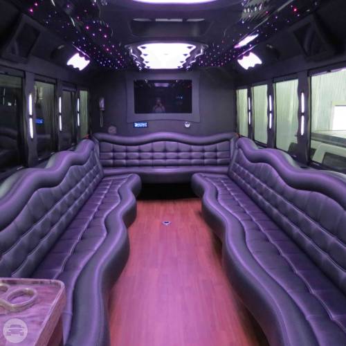 Our Black F550 Party Bus #2 is a 24-26 passenger party bus. It has fiber optics, color changing panels and a new wooden floor.…