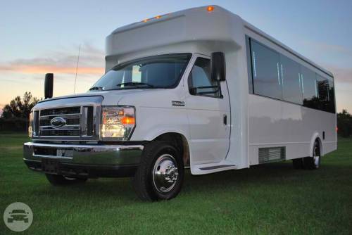Our White E450 Limo Bus can hold 20-22 passengers. This party bus has fiber optics, laser light shows, color changing…