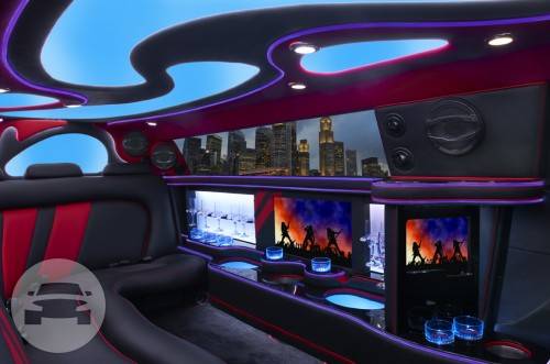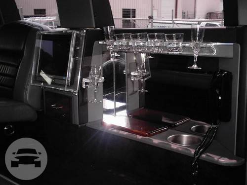 Seats up to 10 passengers Leather Seats Bar Area's TV's CD player DVD player One of a kind Wedding car