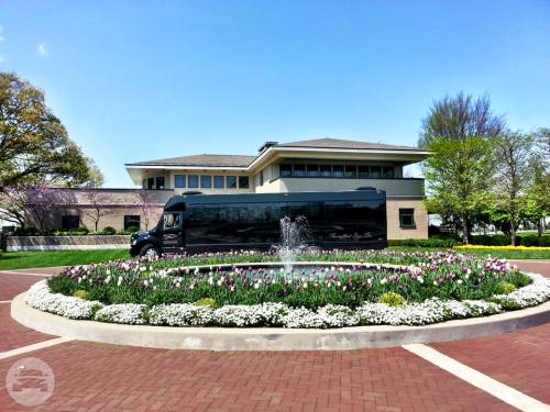 Seating up to 14 passengers comfortably Premium audio/visual systems w/ big screen TV’s, DVD, Bluetooth and ipod Electrical outlets, USB power points and HDMI data plug-ins Black-on-black perimeter leather seating with wood grain floors Large viewing windows with adjustable shades for privacy Luggage compartment rear of vehicle and under seats