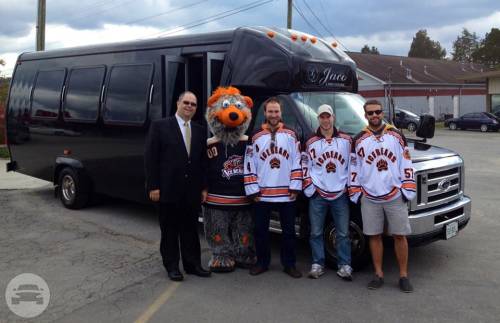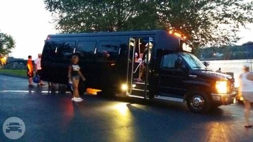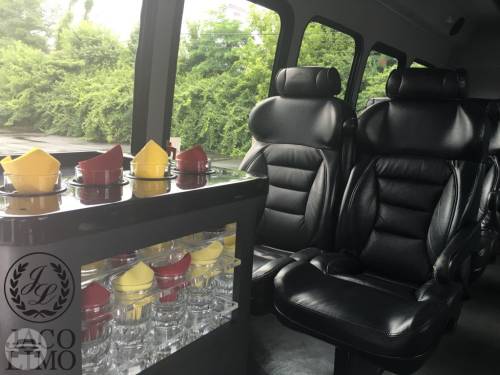 Capacity: 20 passenger seating Plush leather seating Refreshment bar AUX connection and surround sound Rear and overhead luggage Privacy blinds