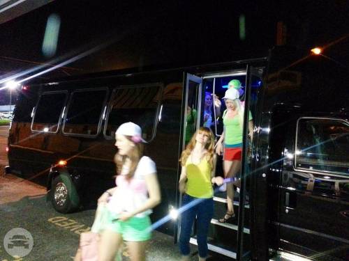Capacity: 10 & 12 passenger seating Tall ceiling, 6′ clearance Plush leather seating (2) televisions Refrigerator Bar w/ rock & flute glasses LED light show Hardwood floor Rear luggage Strobe LED Lights on exterior