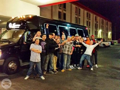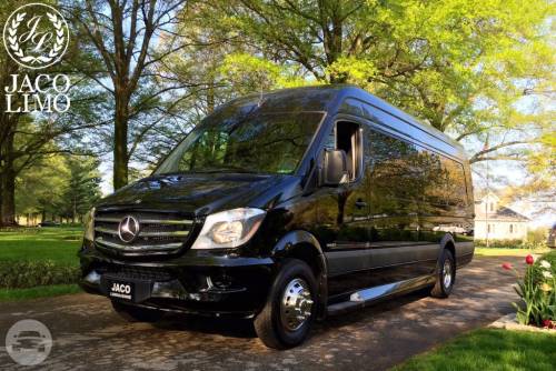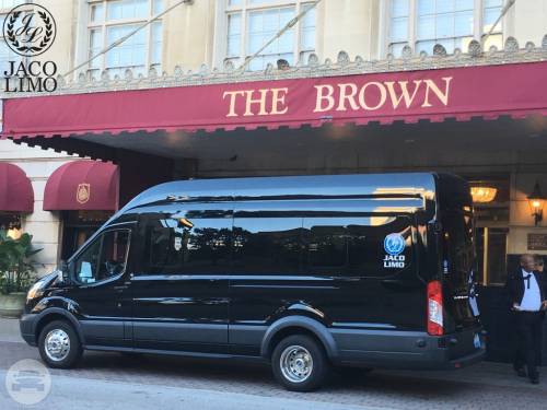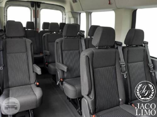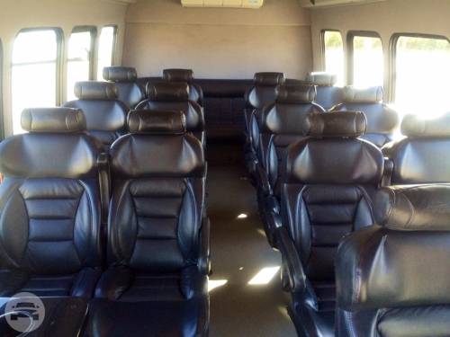 Capacity: 14 passenger seating Ample luggage Center aisle access Tinted windows Satellite radio Rear Vented A/C & heat