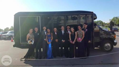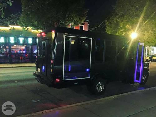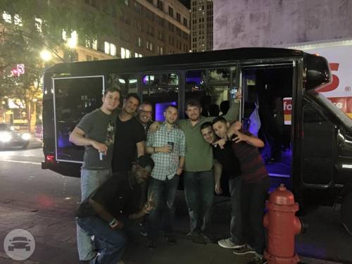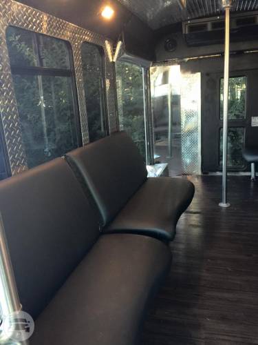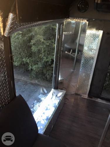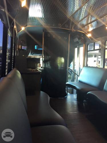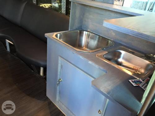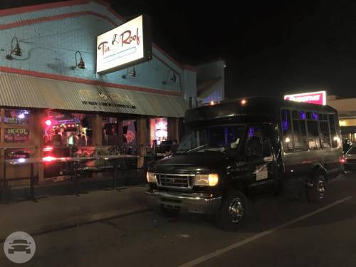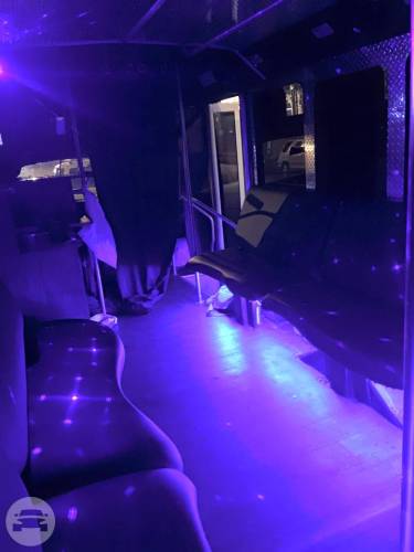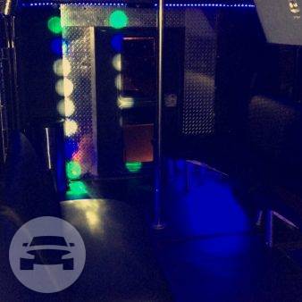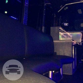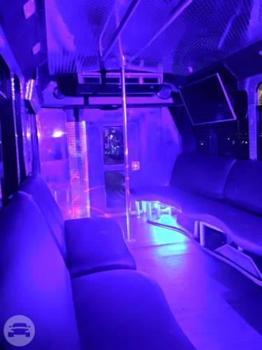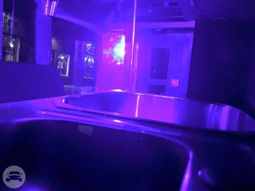 This is a head turning Party bus! Bachelor/Bachelorettes love this thing. Featuring Chrome dual wheels Lots of windows Full privacy in the back closing off from the driver Wrapped in 5% tint 5 USB charging ports and slots to hold phones LOUD stereo system with DVD player LED stand up bar with deep sink, fits ice with 30 beers Drink holders on bar Projecting lights LED lights around ceiling Laser show lights Dance pole and room to dance with plenty of leg room Black marine perimeter seating Deep beer well in back of bus Long hand rail across ceiling 55′ smart TV to display all your favorite memories on a slideshow