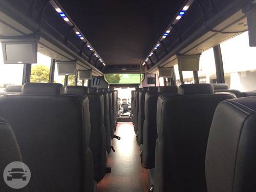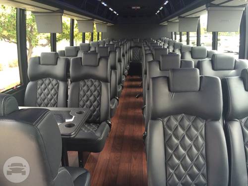 Passenger Capacity: 35-37 Passengers Luggage Capacity: 65 (average size bags) Vehicle Features: This Bay Area Shuttle Bus is configured with comfortable 2-by-2, high-backed leather seats along a center aisle. The vehicle is air conditioned and has a sound system with mic; AM/FM radio and DVD-CD player. In the rear is additional storage for luggage. Equipped with seat belts.