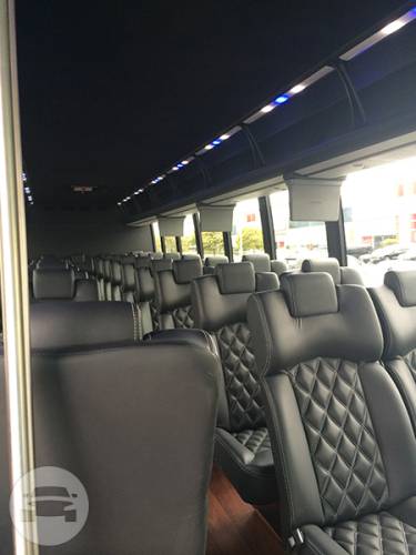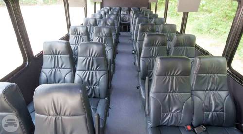 Passenger Capacity: 1-27 Passengers Luggage Capacity: 54 (average size bags) Vehicle Features: This Executive Shuttle Bus is configured with comfortable 2-by-2, high-backed leather seats along a center aisle. The vehicle is air conditioned and has a sound system with mic; AM/FM radio and DVD-CD player. In the rear is additional storage for luggage. Equipped with seat belts.