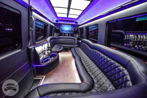 Culdesac offers luxury limousine service and limo rental with 12 passenger Mercedes Sprinter Limo featuring premium sound, aux/bluetooth, bottled water, ice, cups, glasses, video, LED light show, and other refreshments upon request. Ideal for: Wedding Party Transportation Bachelor/Bachelorette Parties Birthday Parties Proms/Formals Corporate Events Wine Tours