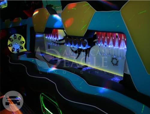 • 15-20 passengers | • New model Limo buses | • Aux and Bluetooth Capabilities | • Custom Fiber and LED Ceiling | Indirect Lighting for Floor | TV’s and DVD’s| • Dance Floors | • Acrylic | • Mood Lighting | • Tinted Windows| • Built in Coolers | •3 Tone Interior