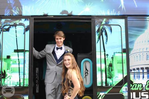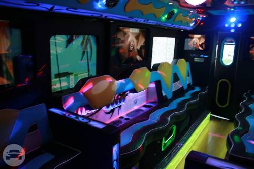 • 22-32 passengers | • New model Limo buses | • Aux and Bluetooth Capabilities | • Custom Fiber and LED Ceiling | Indirect Lighting for Floor | TV’s and DVD’s| • Dance Floors | • Acrylic | • Mood Lighting | • Tinted Windows| • Built in Coolers | • 3 Tone Interior
