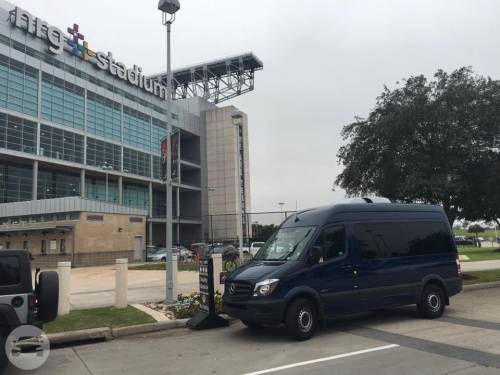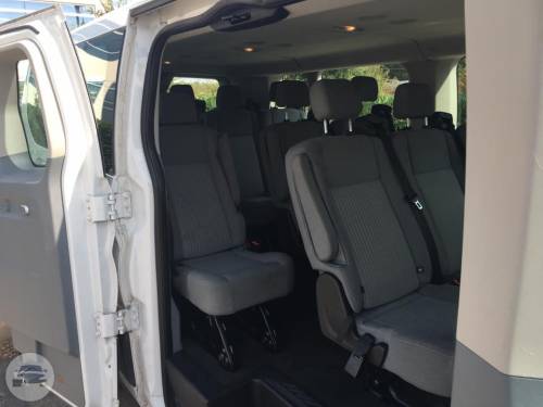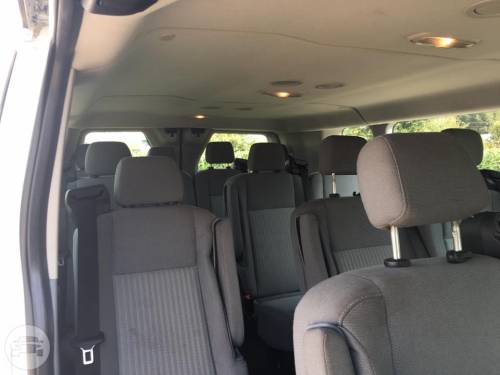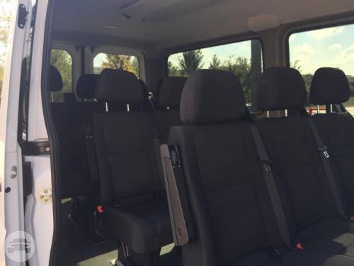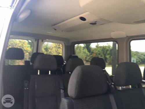 13 passenger seats, and additional captain chair next to the chauffeur Single and double reclining seats with arms 3-points seat belts internet accessibility Aero dynamic door for noise isolation Back up camera with monitor Non smoking vehicles Tinted windows Luggage capacity: 12-14 large suit cases. If two seats are removed