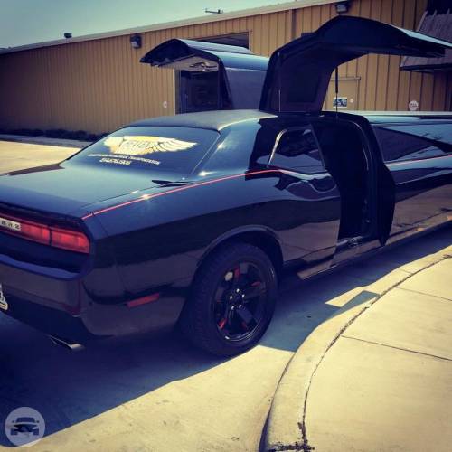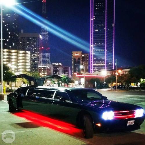 Passengers: 8-10 Vehicle Color: Black Dallas Limos one-of-a-kind black Dodge Challenger Limo will have your group talking about your time together for years to come. One of the most recognizable limo’s in the state of Texas, you are sure to turn a few heads when your group shows up in this ride. Featuring Jet doors with embedded TV’s, multiple large interior TV’s and J-Style black leather bench seating, you will be the talk-of-the-town when you reserve this vehicle. For reservation information or to answer any questions about our Black Dodge Challenger Limousine, Custom Starlight Mirrored Disco Ceiling Multi-Color LED Light-Up Disco Flooring Jet Doors Featuring Embedded TV’s Multiple Large Interior LED TV’s Large TV Featured in the Driver’s Partition High Energy Output Speakers with Subwoofers and Amplifiers Fiber Optic Lighting Featuring Starlights Throughout the Limo J-Style Bench Black Leather Seating Wet Bar Area Featuring a Cooler with Ice, Champagne and Decanter Custom Halo Red & White Headlights Exterior Multi-Color RED LEDz Under-Glow LED Lights